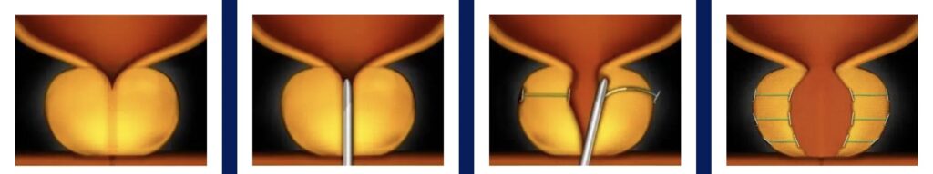 専用のインプラントを用いて、前立腺の尿道を広げ排尿を楽にします。